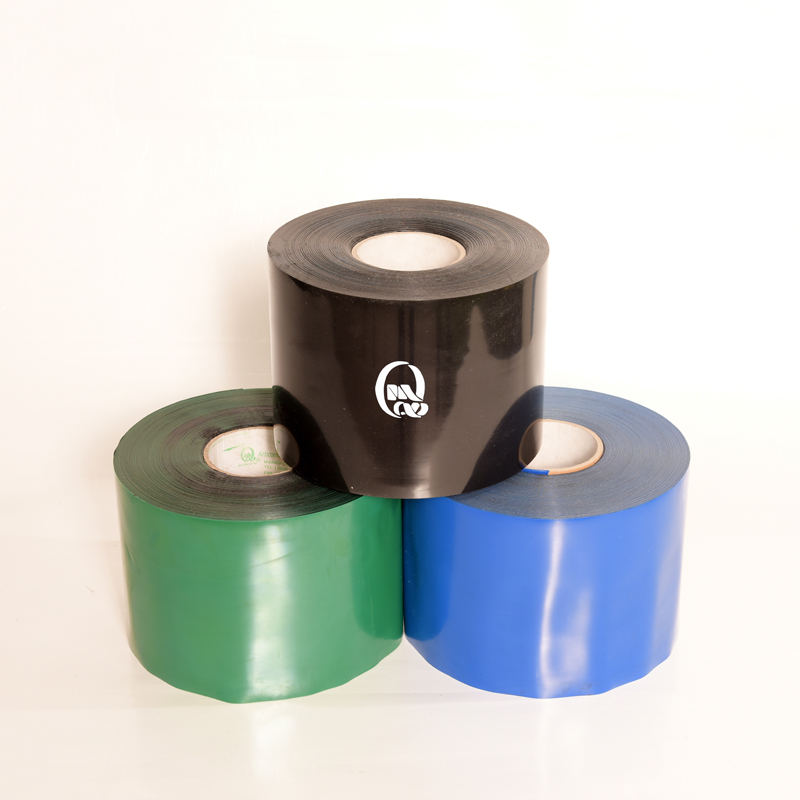 膠層通常是以丁基橡膠為主體的膠粘劑,通過與聚乙烯基膜的熱復(fù)合過程形成共擠壓的帶狀防腐材料。丁基橡膠具有極低的氣體透過率和良好的防水性能,同時具有優(yōu)異的粘接密封性能和耐老化性。膠層的作用是將聚乙烯基膜緊密粘貼在管道表面,形成連續(xù)、無縫的防腐層,進一步增強防腐效果,確保與基材(如鋼管)的良好粘接,防止水分和腐蝕介質(zhì)滲透到金屬表面。